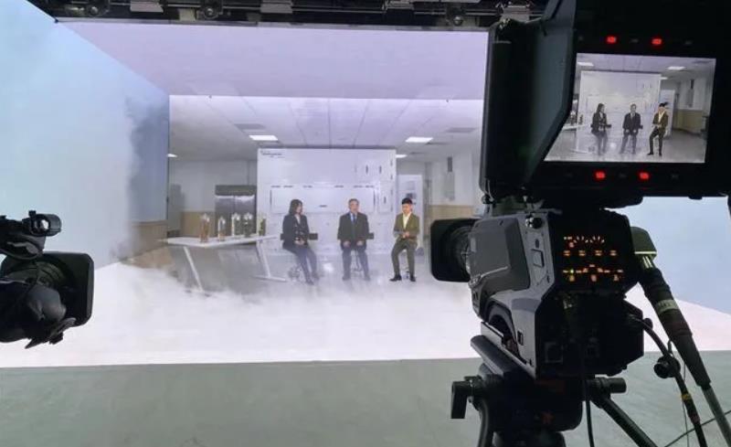 这个神奇的演播室,可以让人像坐上时空穿梭机,虚拟空间与现实世界可以神奇融合,带你突破时空壁,实现沉浸式听会+沉浸式聊会。