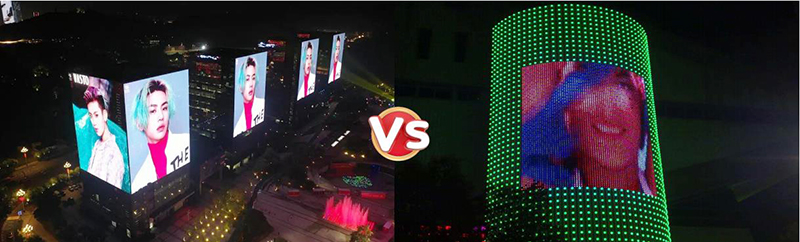 星空官网从事LED显示屏产品已经有20年历史了,实力雄厚,产品质量过硬。那么我们的LED共形屏跟传统LED点光源、洗墙灯有哪些区别呢,可以从一下几个方面对比: