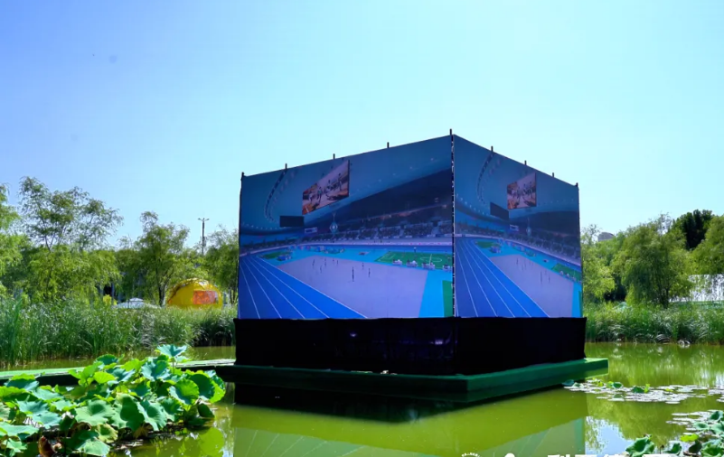 在湖心岛生态区,星空官网通过将L型折叠屏与园林造景融合,构建起“科技+自然+人文”三位一体的创新体验场,将赛场上机器人的精彩表现清晰地展示在游客面前,为游客带来了一种全新的游览感受。